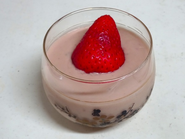イチゴのムース(2026年3月28日) 4カップ分 豆乳 250cc イチゴ 250g 黒糖 30g 粉寒天 4g ココナッツオイル 30g 片栗粉 10g 水 大さじ1 トッピング用イチゴ 4個 ホーム スイーツ